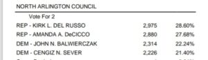 Not only did Democrats John Balwierczak & Cengiz “Jim” Sever win several election precincts, Governor-elect Mike Sherrill, Assemblymember Gary Schaer, and two of three Bergen Commissioners all won in North Arlington breaking the all-Republican grip on the borough.