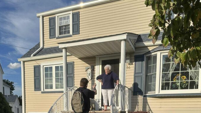 Democratic council candidate John Balwierczak seen today campaigning door-to-door in all critical 7th district that has been hit the hardest by the random Republican tax reassessments that have homeowners furious and seeking responsible two-party government come the fall campaign.
