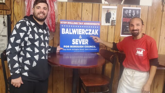 NORTH ARLINGTON – Pizza Land, one of the most recognizable retail establishments in the United States due to its connection to the award-winning HBO series, The Soprano’s is doing what it can to promote the council candidacy of John Balwierczak and his running-mate, Cengiz “Jim” Sever.