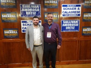 Legislative assembly incumbents Gary Schaer & Clinton Calabrese along with Bergen County commission incumbents Amoroso, Sullivan and Ortis in a display of unity up and down the ticket also greeted the gubernatorial nominee.