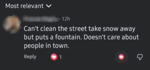 “Can’t clean the street, take snow away, but puts in a fountain, doesn’t care about people in town.”